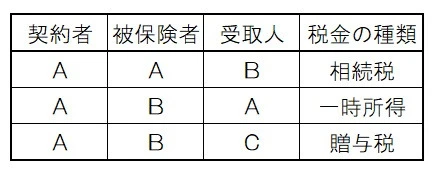 契約者と被保険者、保険金受取人が誰かによって、課税される税金の種類が変わります。