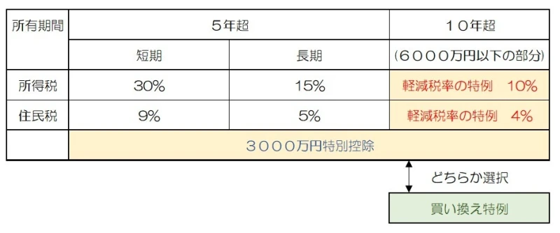 居住用財産を10年超保有して売却した場合、税率を軽くできる制度です。